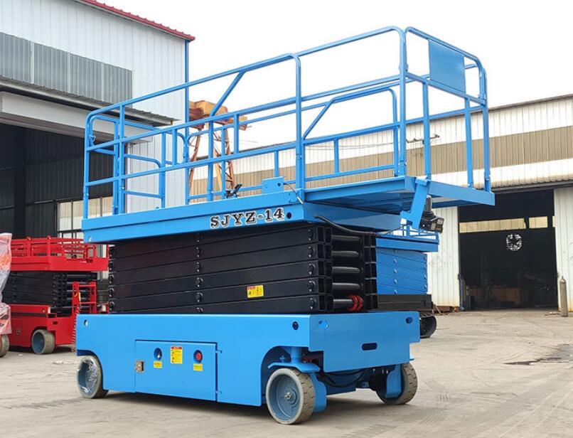 自行式:使用人员可以不用下升降台,就可控制机械升降并且行驶到其他的工作地点,自身具有行走及转向驱动功能,不需人工牵引,不需外接电源,移动灵活方便。